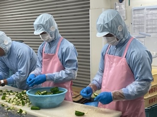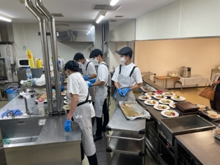 2日目は、受託させていただいている企業様の食堂で配膳のお手伝いをしていただきました。